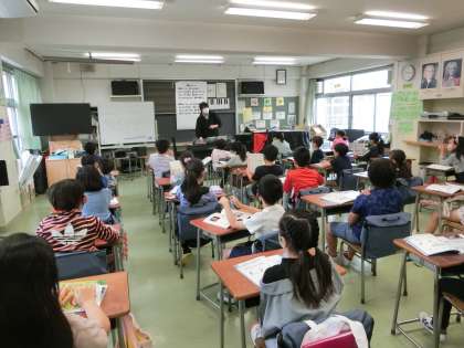 音楽は「パパゲーノとパパゲーナの二重唱」という曲を聴きました。まずは先生から作曲家についての説明を聞いたのち、2人の歌声の重なりを学びました。先生の丁寧な説明があると分かりやすいですね。