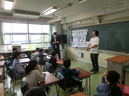 2組の学級活動では「5年生の1学期をよりよくすごすために」というテーマで、1学期の目標を考えました。はじめに6年生の多喜先生が来て、今の6年生のがんばっている様子を話してもらいました。「一人ひとりが成長し、輝けるクラス」が2組のクラス目標です。クラス目標と照らし合わせて、自分たちが1学期にどのように取り組みたいか?それぞれの目標を考えました。立てた目標を常に意識して、行動できる高学年を目指していきたいですね。