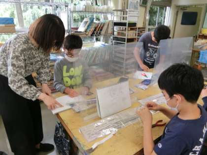図工は「針金アート」に取り組み始めました。それぞれがスケッチに描いた図案をもとに作成しています。針金が意外と硬く、思ったようにいかないので、試行錯誤しながら、集中して作業を進めていました。