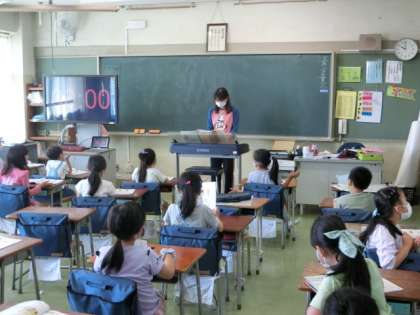 国語は「うれしいことば」という単元を学習しました。「言われてうれしかった言葉はありますか?」という先生からの問いに、「せんたくものをたたんだとき『ありがとう』と言われた」「バスケットボールを始めたとき『すごい』と言われた」など、子供たちからたくさんの意見がでました。「うれしいことば」を心の中にたくさん貯められるといいですね。