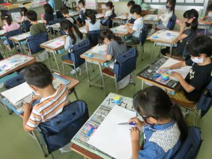 国語ではひらがなの学習が進んでいます。今日は「ふ」を練習しました。ひらがなの中でもとても難しい字です。ていねいに書いていました。ひらがなの学習が進み、ひらがなプリント集もとても分厚くなりました。