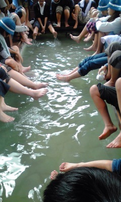そのあと、源泉で熱いお湯にさわり、あんよの湯で足を入れ、疲れを取りました。