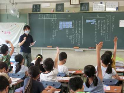 国語は巻末の「ポスターを読もう」という教材を学習しています。今日は「2つのポスターをくらべよう」で、コスモス祭りの2つのポスターを比べながら、学習しました。2つのポスターの「どちらにもあるもの」「どちらかにしかないもの」「しめされ方がちがうもの」に分けて、先生が丁寧に聞き取ってまとめてくれます。このようにまとめると3年生にとって大事な、比べ方がわかりますね。