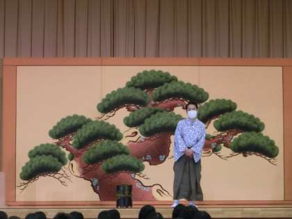演じる先生から、舞台や立ち居振舞い方について教えていただいた後、「附子」を鑑賞しました。難しい言葉が並んでいますが、授業で学習しているため、子供たちは分かっています。迫力のある演技を目の前で見ることができ、より理解が深まったと思います。