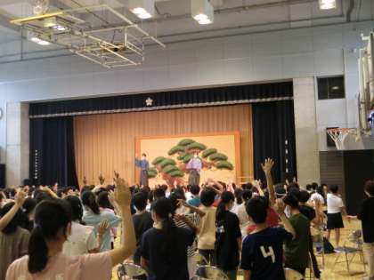 烏山北小の体育館で、古典芸能鑑賞教室が開かれました。