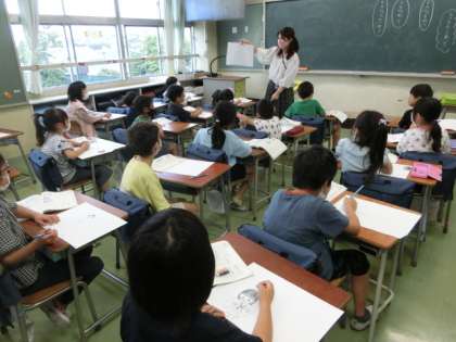 国語は「あったらいいな、こんなもの」という単元で、「あったらいいな」と思うものを考えて、みんなに紹介する学習です。今日は「あったらいいな」と思うものを考え、画用紙に絵で描いてみました。始めはなかなか思い出せなかったのですが、少しずつアイデアが浮かんできます。「どんなときでも、ふるとお金が出てくる貯金箱」「空を飛べるチョウの羽」「どこでもひみつきち」「むげんおかしましん」・・・。みんなのお話を聞いてみたいです。