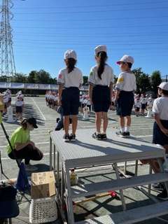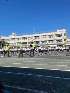 そのあと、代表委員会の児童による運動会のスローガン発表、準備運動をしました。
