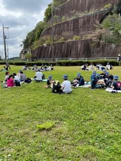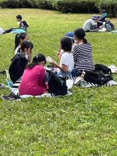 お弁当は、大谷景観公園で食べました。爽やかな心地よい風が吹き、トンボがたくさん飛んでいました。芝生の上で食べるお弁当は、格別に美味しかったです。