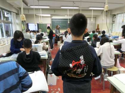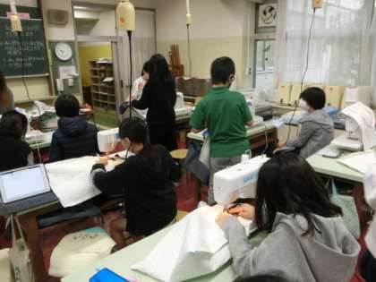 家庭科は「トートバッグ・ナップザック」を作製中です。トートバッグとナップザックのどちらを作るかは自分たちで選びます。ミシンを使って、作製します。保護者のご協力もあり、ミシンで縫う作業を子供たちは楽しく取り組んでいます。作業が終わった子はロイロノートで感想を送ります。「ミシン目が曲がらないように気をつけた」「返し縫いをして持ち手を丈夫につけられた」完成した作品を誇らしそうに見せてくれました。展覧会での展示を楽しみにしていてください。