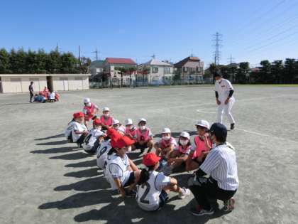 今日は特に投げることを中心に教えて頂きました。頭にボールをトントンと当ててから投げるやり方は、肘をあげて投げる動作につながります。これからもぜひやっていきましょう。