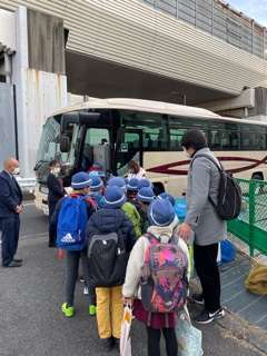 子供たちにとっては、初めてバスに乗っての社会科見学です。バスの中では、今日お世話になる運転手さんとガイドさんにしっかりとあいさつをして、ガイドさんのお話を聞いています。