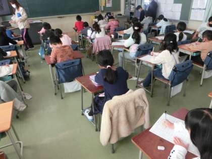2学期も終わりに近づいてきました。国語の授業では「書き初め」の練習をしました。はじめに一文字一文字、担任の先生が文字のポイントを説明してくれました。先生の指示にしたがって、子供たちはいつもより少し緊張しながら、姿勢よく取り組んでいました。