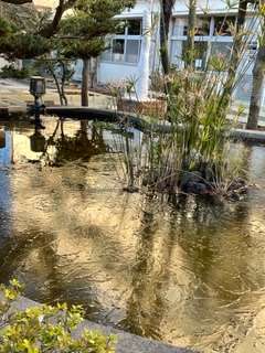 今朝、いつもの時間に学校に来ると、ひょうたん池やプールの水面に、薄らと氷が張っていました。この冬、初めてのことです。今日は、それだけ寒い朝となりました。