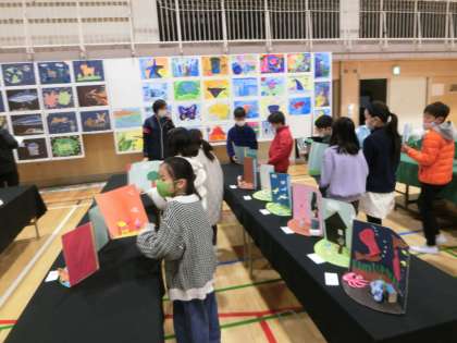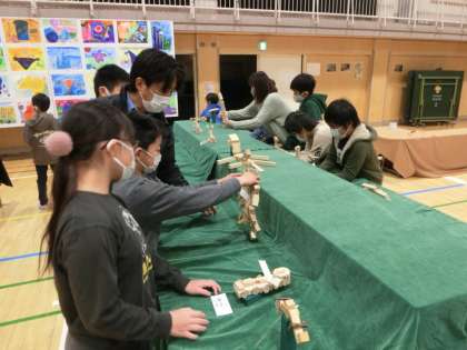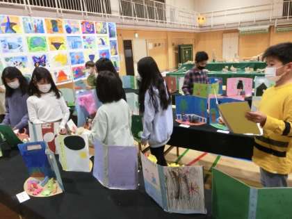 今日は図工の授業で作製した作品を体育館へ運びました。