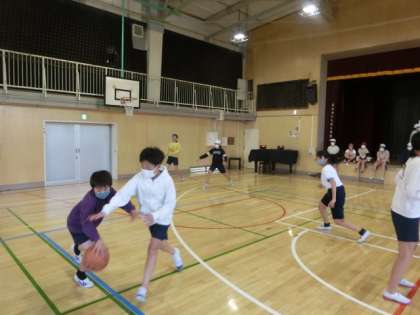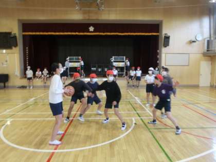 学年のお楽しみ会で、バスケットボール大会を行いました。