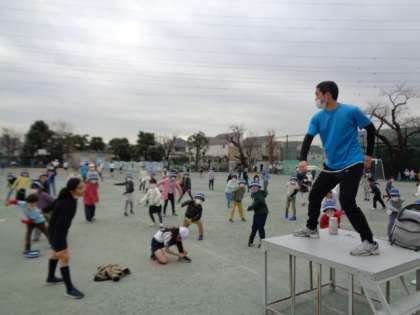 なわとびパフォーマーの藤沢祥太郎(ふっくん)さんを講師にお呼びし、なわとびの授業をして頂きました。まず全校朝会で、ふっくんによるなわとびパフォーマンスを校内放送で見ました。ルパン三世のテーマの曲に合わせ、いろいろな跳び方を披露してくれました。日頃、見たことのない跳び方なので、子供たちもテレビに釘付けです。