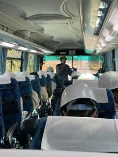 工場内は撮影禁止のため、バスの中しかホームページに掲載できませんでした。子供たちはヘルメットを被り、工場の方のお話を熱心に聞いていました。
