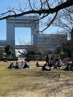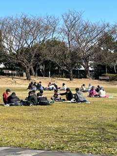 東扇島中公園に来ました。これからお弁当の時間です。公園には武蔵丘小の人しかいなかったので、芝生を広々と使わせていただきました。今日は暖かいので、お弁当も気持ちよく食べることができました。