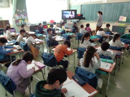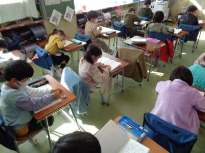 3組は「どうぶつの赤ちゃん」のまとめです。今日は「カンガルー」について、段落ごとに文章をまとめる難しいことにチャレンジしていました。集中して取り組む様子を見て、この1年間の成長を感じました。