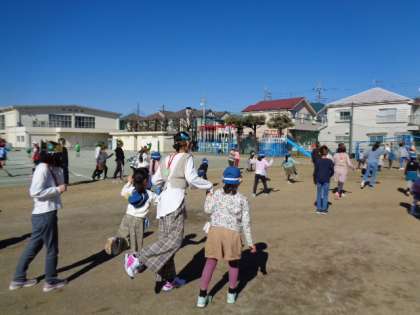 お世話になった6年生とふれ合える機会もあとわずかです。クラスごとに6年生と一緒に遊びました。6年生が1年生に対して、やさしく遊んであげる様子が見られます。おかげで1年生も大喜びで楽しむことができました。