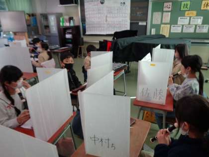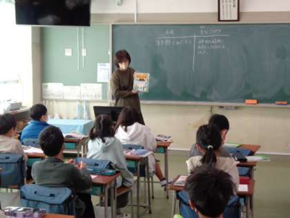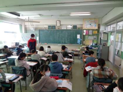 道徳は「たっきゅうは4人まで」という教材を使って、思いやりの心について考えました。卓球台は4人までですが、もう一人、仲間に入れてほしいという友達が来ました。みんなならどうしますか?実際の場面でもありそうな出来事です。みんなで話し合って考えを深めました。