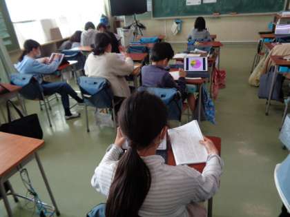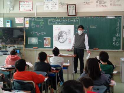 理科は「人のたんじょう」の単元です。1学期に学習したメダカの誕生と比べて考えます。今日は「たいばん」「羊水」「へその緒」などの用語と働きについて学びました。「ぼくは○○だったらしいよ。」とお家で聞いたことと重ねながら、学習を深めている子もいました。