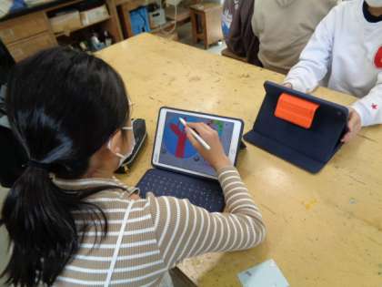 図工は作品作りが終わった子から、タブレットで「ビスケット」というアプリを使って絵を描いていました。描いた絵を動かしたりできるので、とても楽しく取り組んでいます。