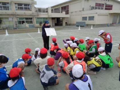 体育は「じゃまじゃまサッカー」です。今日のねらいは「チームで作せんを立てて、じゃまじゃまサッカーをしよう。」です。作戦には「いっせい作せん」「どんどん作せん」「おとり作せん」「フェイント作せん」があります。すべて子供たちから出た考えと作戦名です。今日は最終回だったので、ゲームは大変盛り上がっていました。