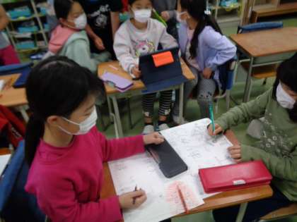 各クラスでは学年の終わりに向け、お楽しみ会の準備を進めていたり、行ったりしています。みんなで考えながら計画し、楽しんでよい思い出を作ってほしいです。