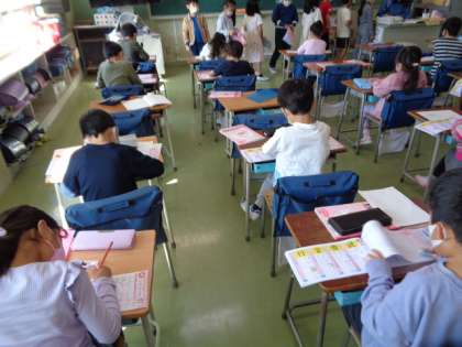 新しい漢字ドリルを使って、1年生の漢字の復習をしました。