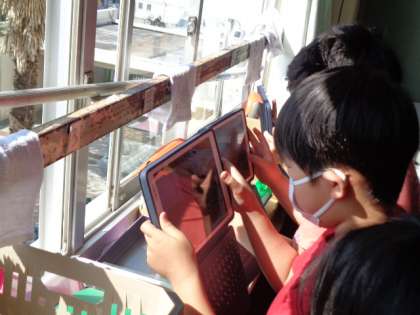 理科は「季節の生き物の様子」の学習です。今は春です。「あたたかくなると・・・」で教室から見える桜の木の様子をタブレットで撮影しました。タブレットで写真を撮って記録しておくと、季節ごとの移り変りがよくわかります。