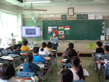 今日からALTのシルビア先生による外国語の授業も始まりました。今日は「世界のいろいろなあいさつをしよう」で、各国のあいさつを学びました。映像入りで分かりやすく、子供たちも楽しく取り組んでいました。