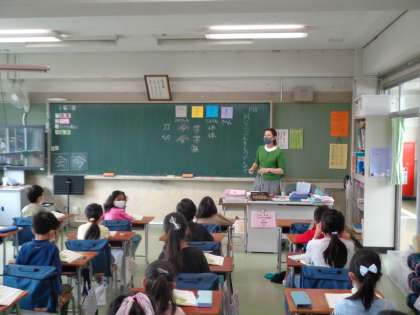 国語は漢字練習が進んでいます。「店」という漢字を学習しました。先生が「みんなの近くにある店は何ですか?」という問いに「ファミマ!」という答えが多くでました。今は「八百屋」や「文房具屋」ではないんですね。