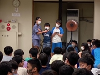 日光最後の夕食のあとは、室内レクをしました。ナイトハイクと花火は雨のため残念ながら中止です。レクで約1時間半、友達との絆を深めました。部屋に戻り、自宅宛てに日光からの手紙を出しました。