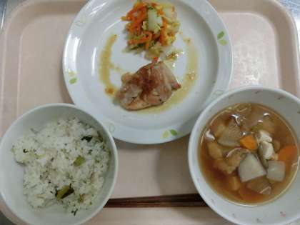 じゃこ菜飯・とり肉の南蛮焼・白菜のゴマダレサラダ・根菜汁