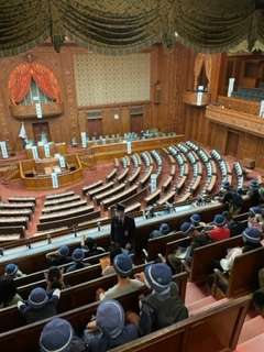 はじめに越智隆雄衆議院議員に来て頂き、説明をしてもらいました。
