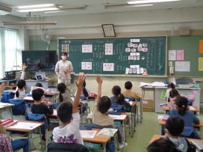 国語は「なかまの言葉とかん字」という学習をしました。まずはそれぞれの言葉をグループに分け、そこから仲間の言葉を集めます。たくさんの言葉を意欲的に探していました。みんなで考えるとより多くの言葉が見つかります。