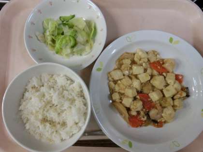 麦ごはん・豆腐の五目炒め・野菜のごま風味