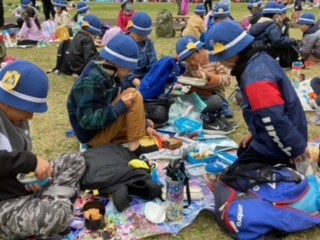 たくさん歩き回って少し疲れが出てきたころでしょうか。しかし、おいしい手作りのお弁当を食べたとたん、元気が復活してきたようです。パワーをたくわえ、みんなとても満足そうです。これから電車に乗って帰ります。お家に帰りましたら、子どもたちの感想をたくさん聞いてあげてください。