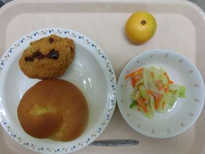 パンプキンパン・かぼちゃコロッケ・コールスローサラダ・みかん