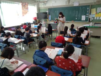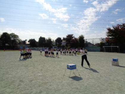 体育はボール遊びです。ボールを投げたり、友達とキャッチボールをしたり、チームで的当てをしたりして楽しみました。本校は体力テストの結果、投力に課題があります。このような運動を通して、投力を高めていきたいですね。
