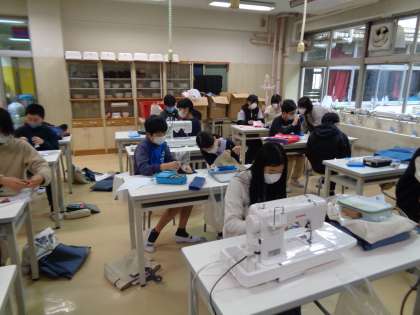 家庭科は「クッション作り」を製作中です。個人差はありますが、一人一人、丁寧に作製中です。とてもかわいいクッションが出来上がりそうです。