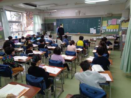 国語は「わたしはおねえさん」という物語文を読んでいます。歌をつくるのが好きなすみれちゃんが歌いながら、話が流れていきます。場面ごとにお話の内容を確認していました。