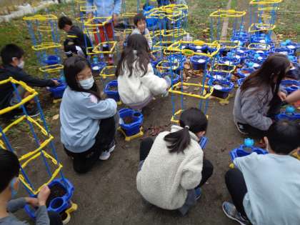 生活科の学習では「ハツカダイコン」を育てます。大根の小さな種を大切にもらい、丁寧に鉢の土にうめていました。「アサガオの種と比べてみて、どうですか?」「とっても小さいです」このあと、どのように育っていくでしょうか?