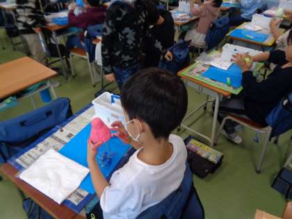 図工は「カラフルバード」という作品作りに挑戦中です。今日はペットボトルに色をつけた紙粘土をくっつけました。どの子も上手に考えているなと感心します。かわいい作品ができあがりそうです。