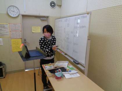 3組はオンライン学習で算数の学習を進めています。先生が放送室に入って、つながっている友達に語りかけながら、進めてくれます。今日は「小数のかけ算」のまとめの学習でした。よく聞いて、しっかり答えていて立派です。