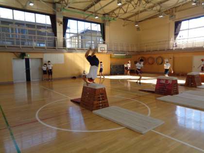 体育は体育館で跳び箱運動を行っています。取り組みたい技にそれぞれがチャレンジしています。開脚跳び、台上前転、かかえこみ跳び、ハンドスプリング・・・、一人一人が一生懸命に取り組んでいるところが素敵です。