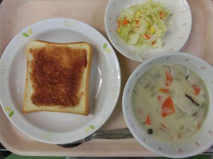 シナモントースト・さつま芋シチュー・コーンサラダ