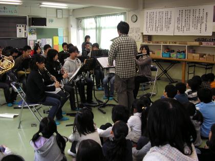 学校公開ありがとうございました。5日間で700人近くの皆様がご来校くださいました。期間中、普段の授業の他に、「英語活動」「二胡の演奏」「国士舘大学吹奏楽部の演奏会」「七輪体験」「凧作り、凧揚げ」等々の授業も見ていただきました。写真は、国士舘大学吹奏楽部の様子です。迫力ある演奏は、子どもたちの心に響き渡ったことと思います。