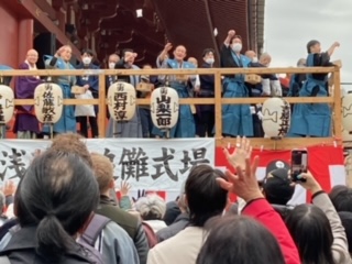 物凄い歓声、地響きしそうな「福は内」「鬼は外」です。皆様にも福多く来ますように。